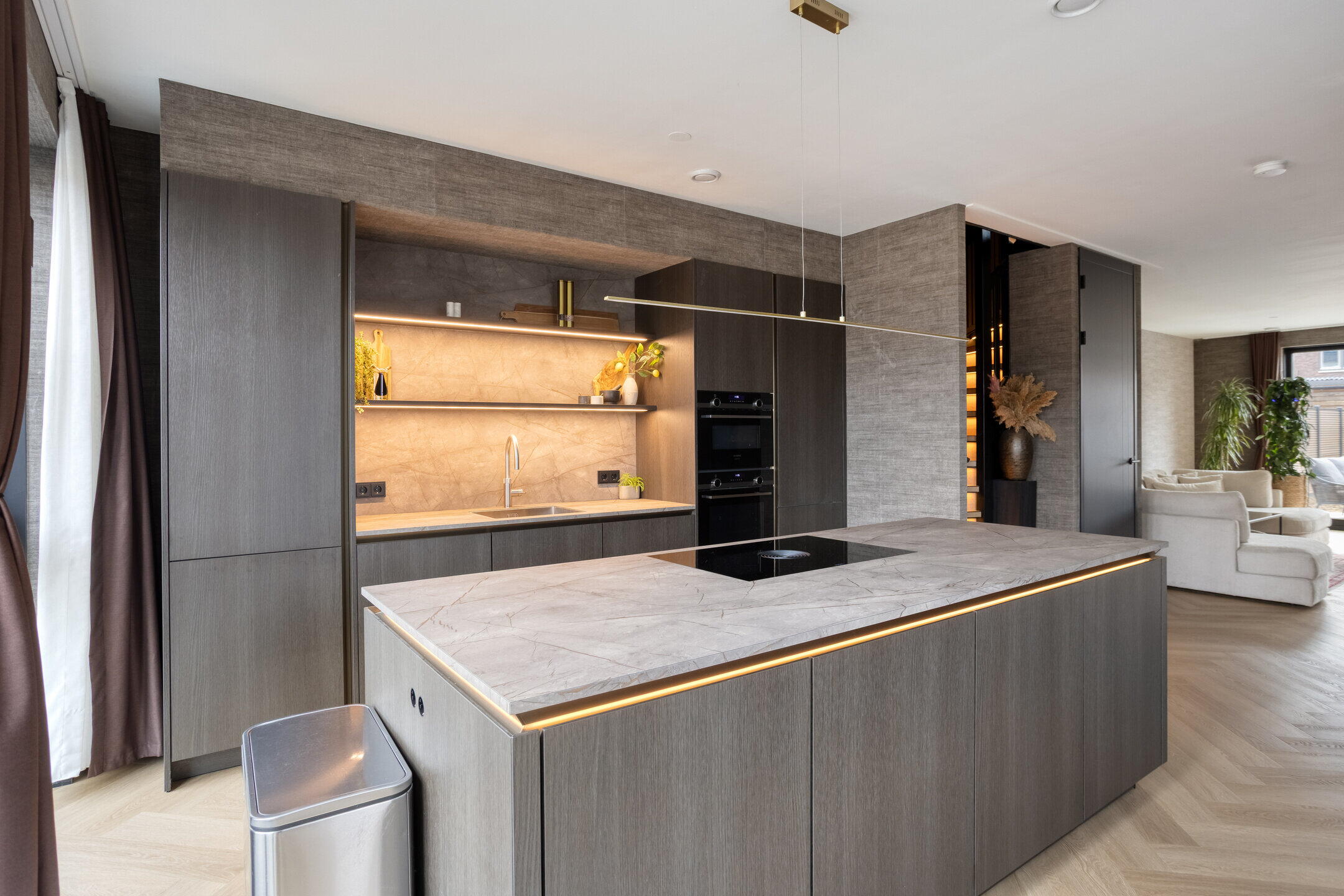 -Luxe Siematic keukenopstelling met kookeiland, Quooker en geïntegreerde afzuiging