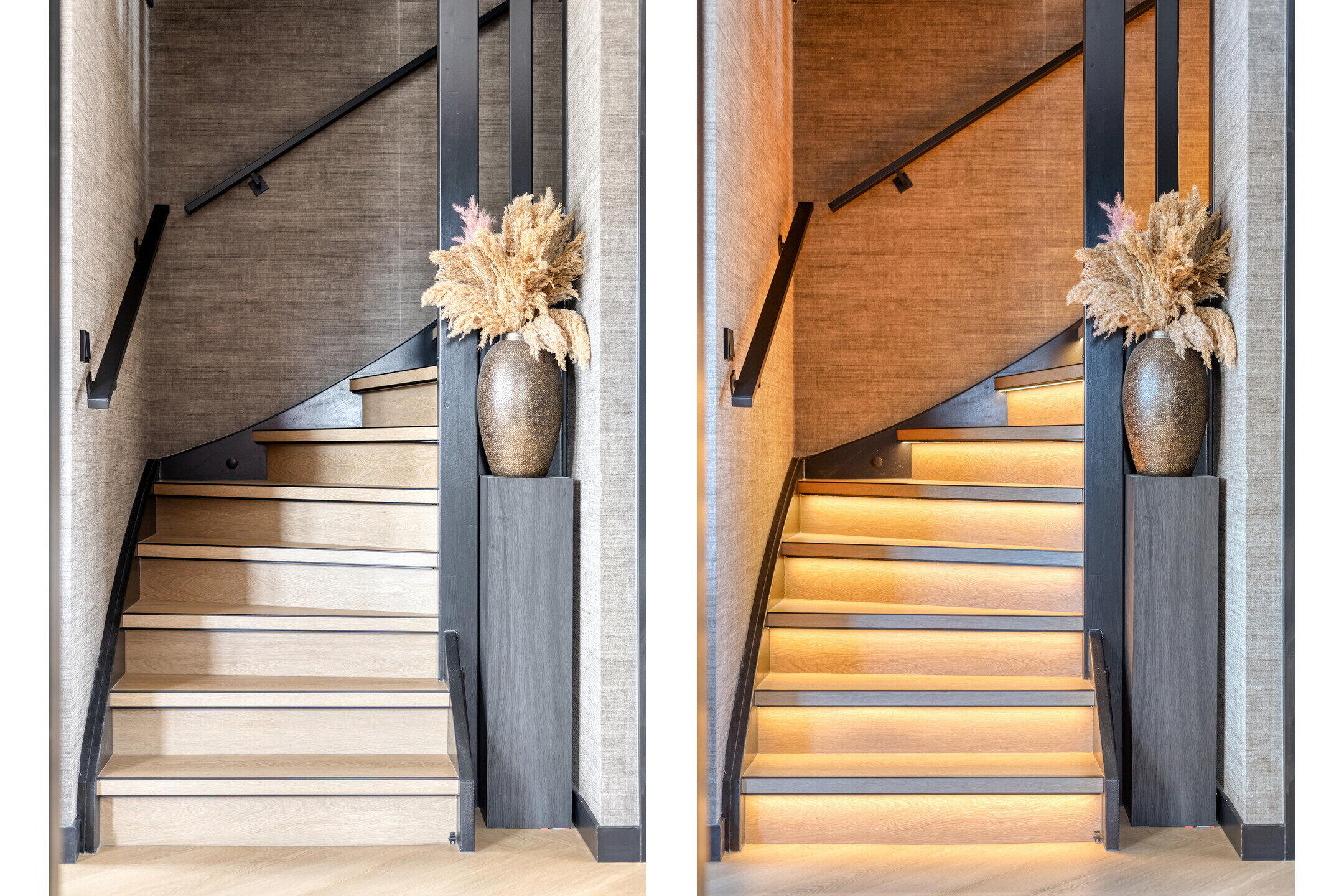 Op de eerste verdieping zijn drie smaakvolle slaapkamers en een luxe badkamer. De 3 slaapkamers zijn voorzien van een pvc vloer met vloerverwarming, fraaie wandbekleding, strakke plafonds, houten draaikiepramen met trippelglas en per kamer een eigen thermosstaat. De moderne badkamer heeft een ruime inloopdouche met glazen wand, dubbelwastafelmeubel, spiegelkast, vloerverwarming, elektrische designradiator en geheel betegeld.