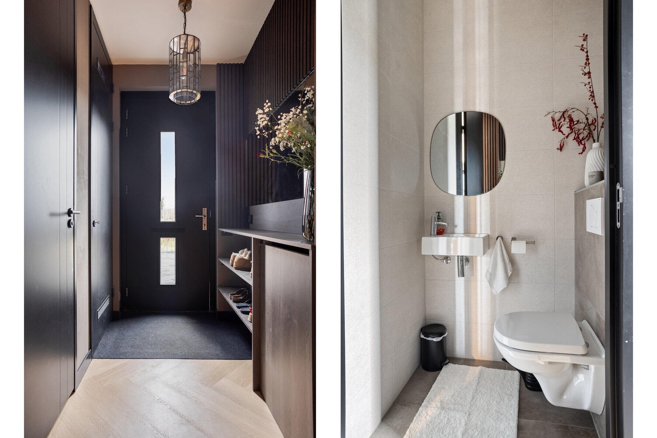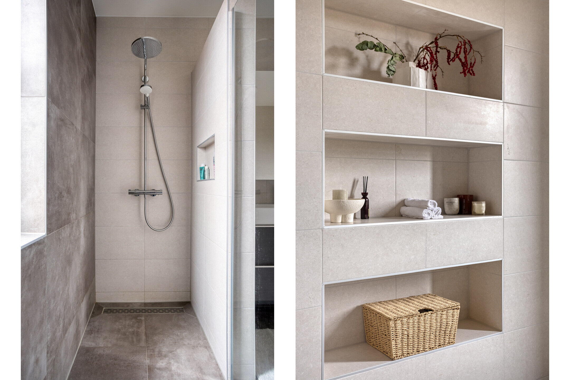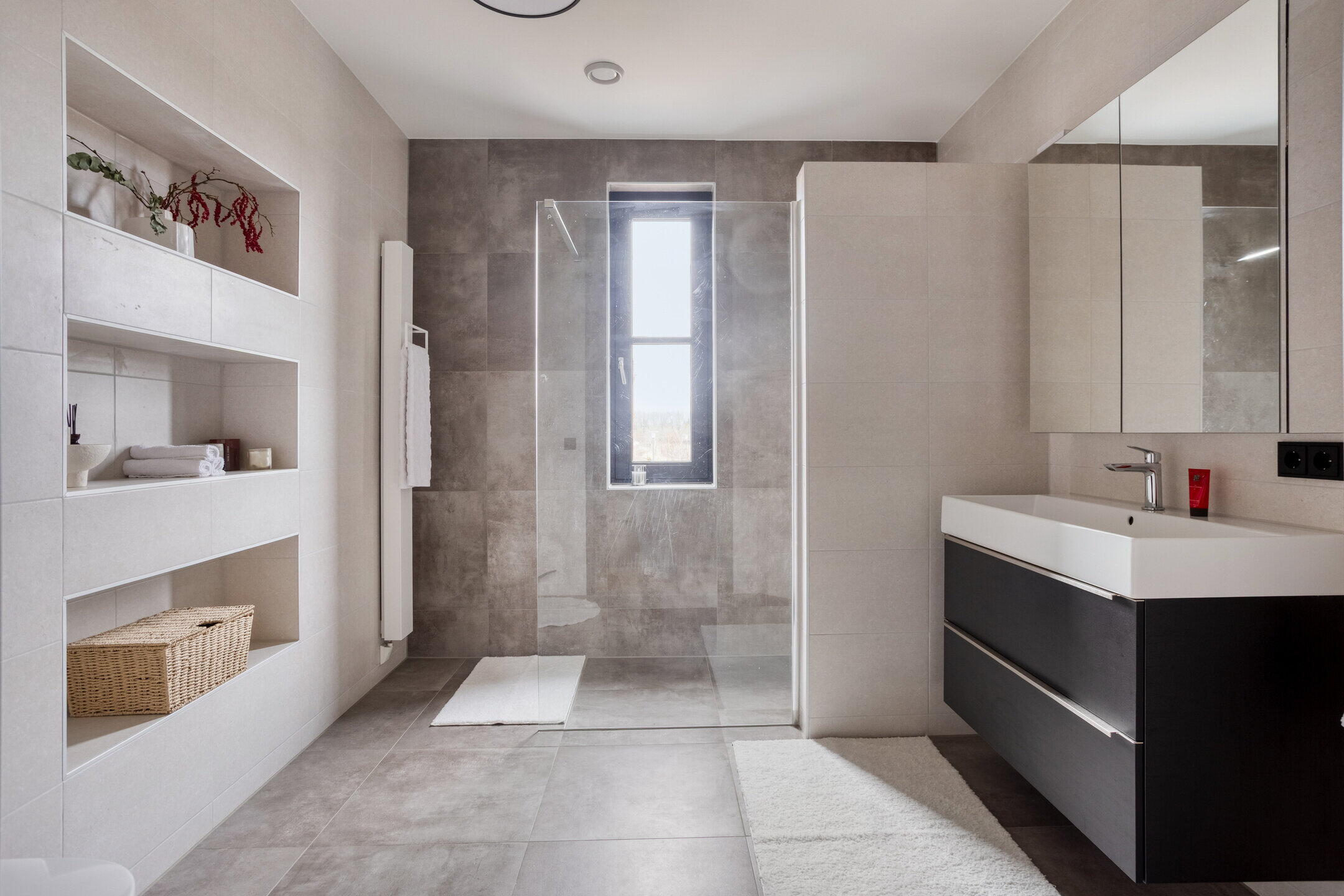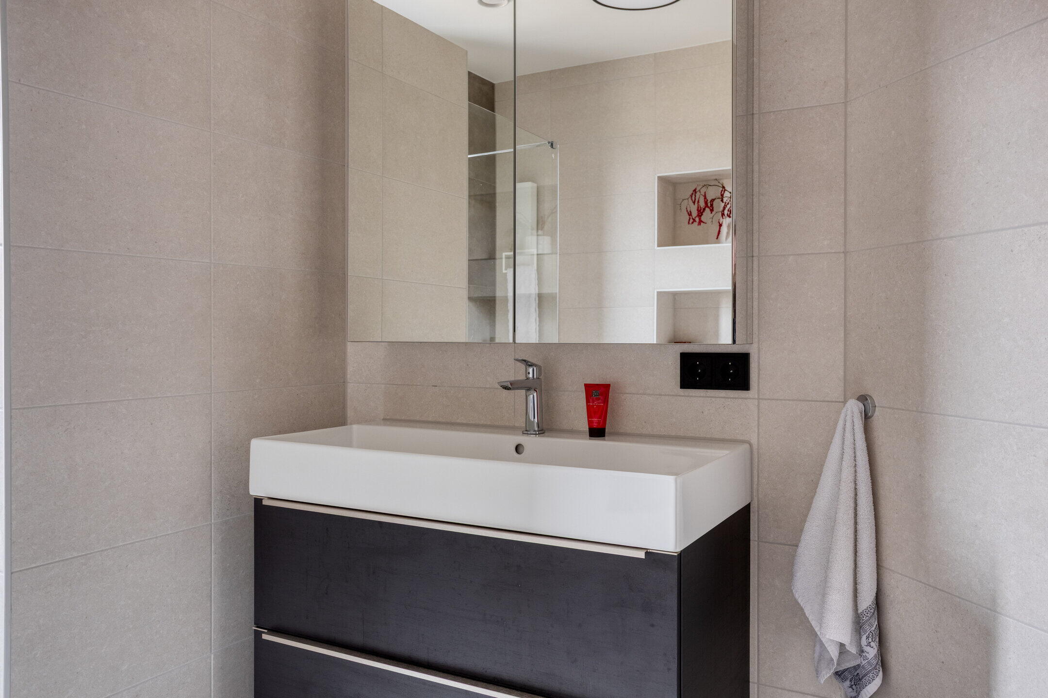 - Toilet, dubbele wastafel, inloopdouche, vloerverwarming