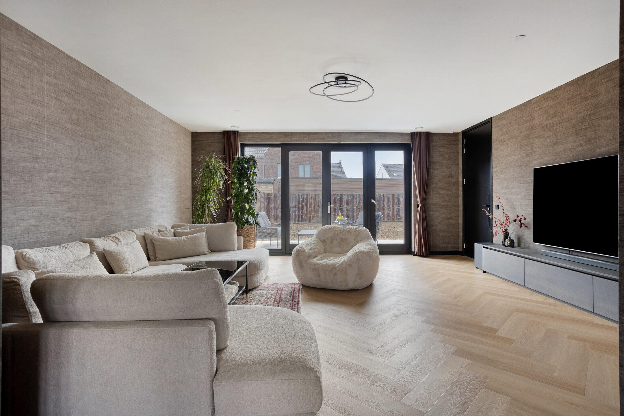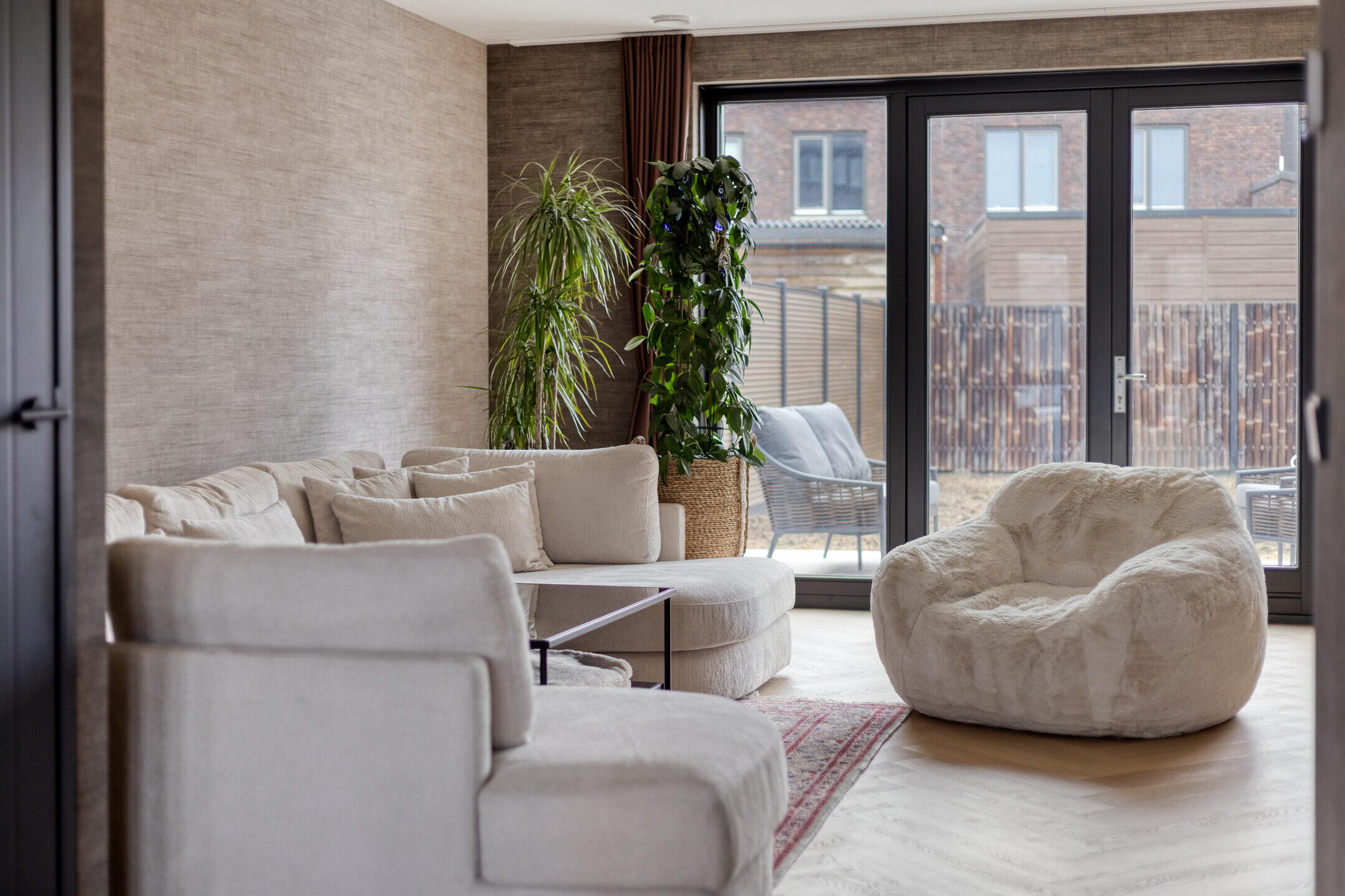 -Lichte uitgebouwde woonkamer met tuindeuren naar de achtertuin